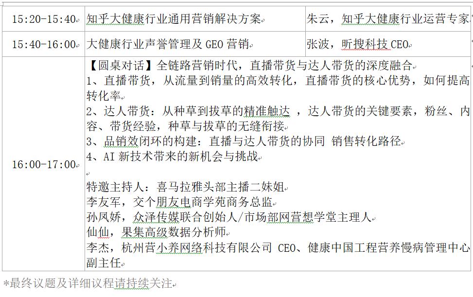 大會(huì)預(yù)計(jì)將匯聚營養(yǎng)保健食品行業(yè)品牌企業(yè)、生產(chǎn)企業(yè)、經(jīng)銷商、電商近千位參會(huì)觀眾,包括國內(nèi)外知名健康保健品牌企業(yè)負(fù)責(zé)人、行業(yè)專家、生產(chǎn)企業(yè)管理層、經(jīng)銷商渠道負(fù)責(zé)人、電商平臺(tái)代表、營養(yǎng)保健品領(lǐng)域從業(yè)人員等等。共同聚焦大健康行業(yè)發(fā)展趨勢(shì),分享行業(yè)經(jīng)驗(yàn),交流營銷策略,深入探討營養(yǎng)保健食品行業(yè)的新產(chǎn)品研發(fā)、市場(chǎng)營銷、電商渠道拓展、品牌運(yùn)營等方面的話題。