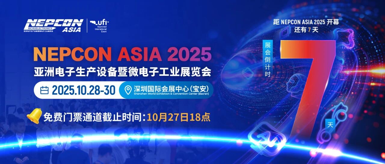電子展:倒計時7天!NEPCON ASIA 2025重磅發(fā)布眾多亮點(diǎn)展區(qū)、40場高端論壇、新品首發(fā)及前沿方案,搶先登記免費(fèi)領(lǐng)100元門票